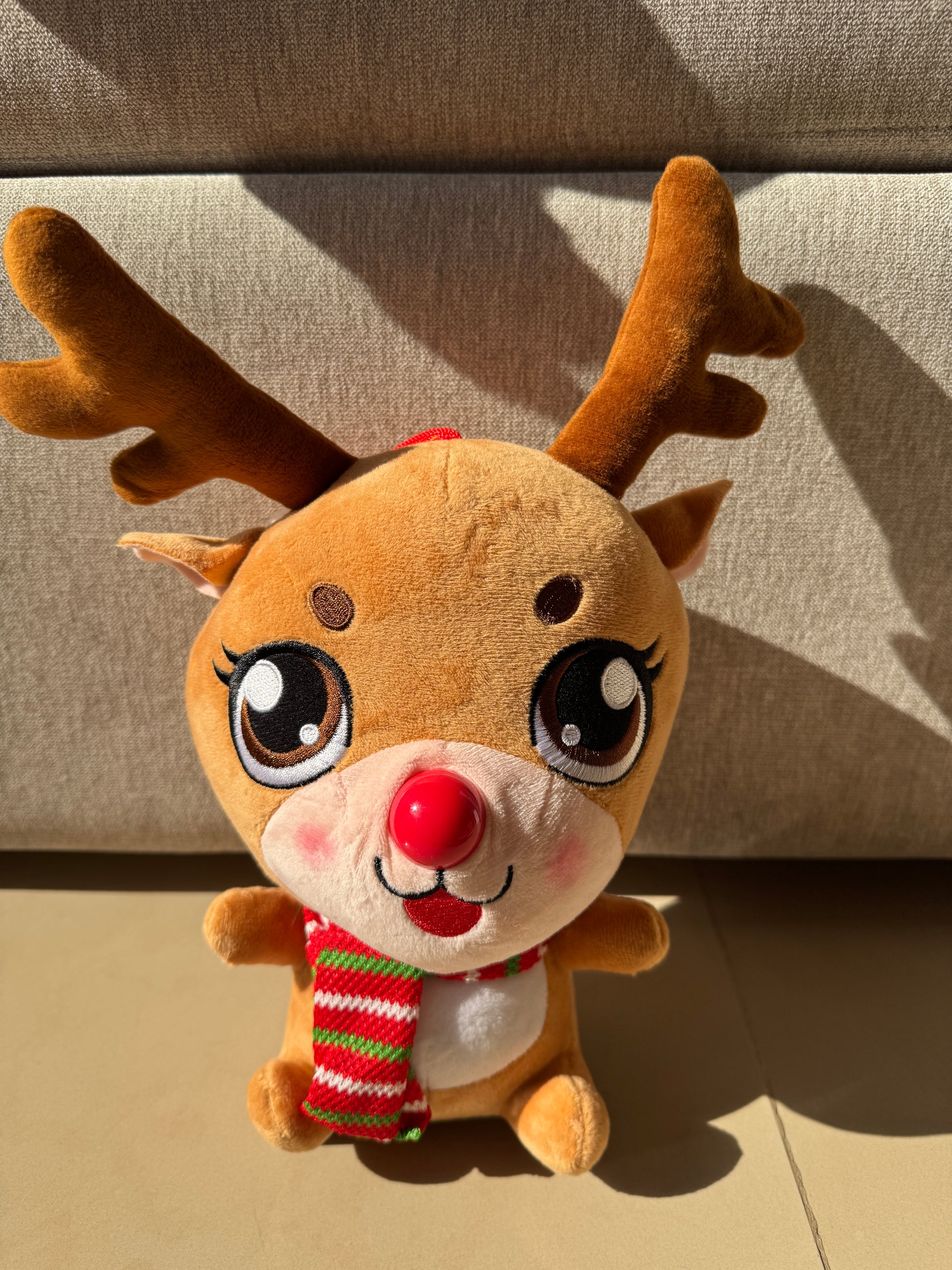 Meet Ruby the Reindeer, a super-soft, squishy plushy with a cute red nose and rosy cheeks. She’s adorable for gifting, perfect for cozy decor, and guaranteed to bring a smile wherever she’s placed!